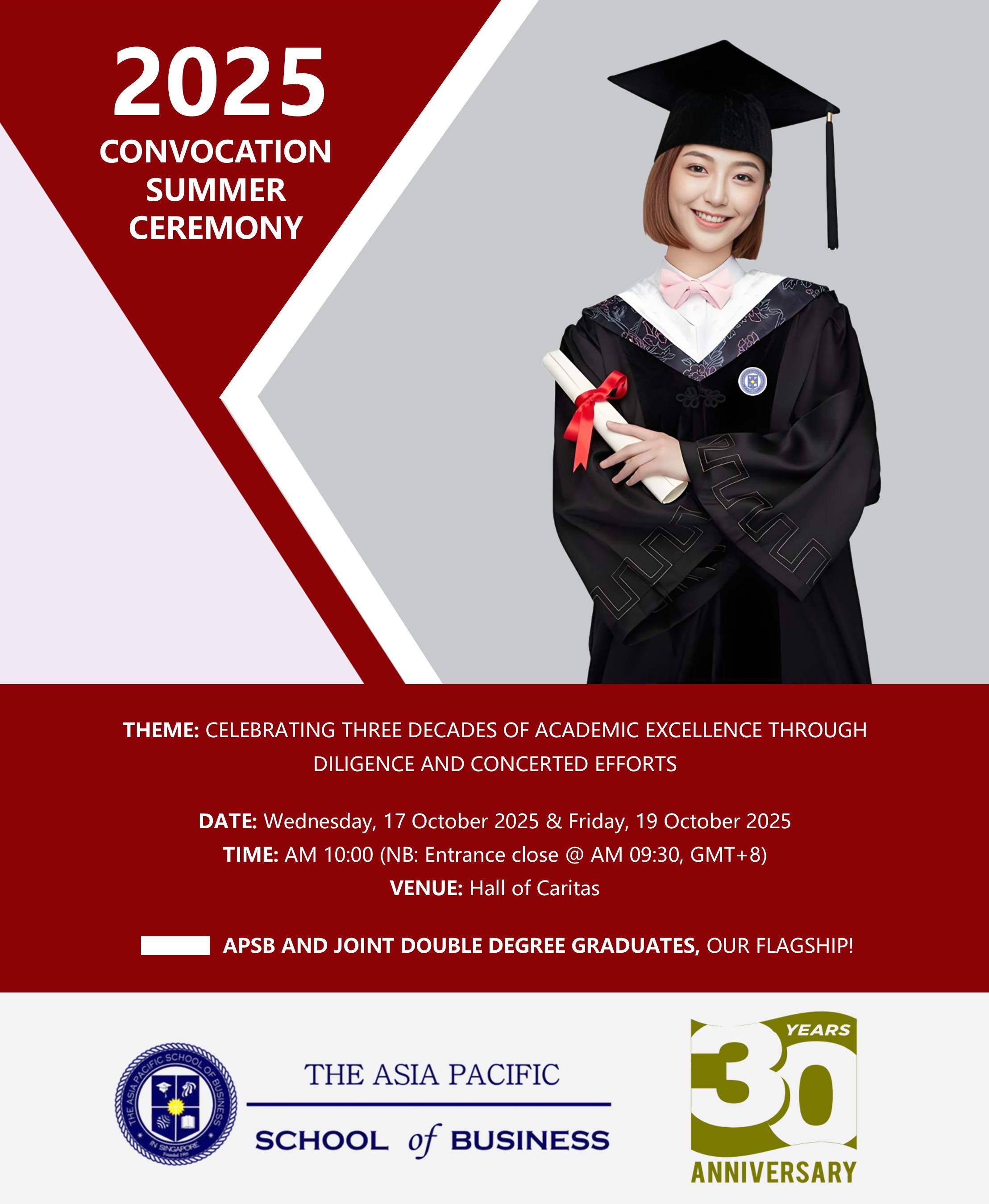 Notice of Summer Graduation Ceremony & 30th Anniversary CelebrationThe Asia Paci